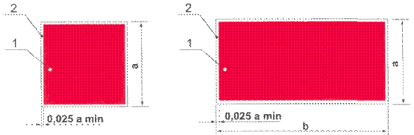 а, b — стороны квадрата и прямоугольника (2a = b); 1 — основная поверхность; 2 — кант