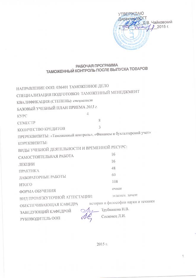 Дисциплина «Таможенный контроль после выпуска товаров» относится к базовой части профессионального цикла ООП ВПО.