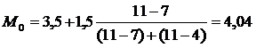 Найдем моду по формуле (2.2):