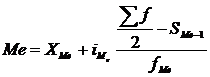 Значение медианы вычисляется по формуле: