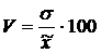 Для сравнения размеров вариации различных признаков, а также для сравнения степени вариации одноименных признаков в нескольких совокупностях исчисляется коэффициент вариации (V), который представляет собой процентное отношение среднего квадратического отклонения и средней арифметической: