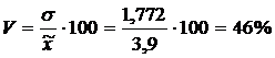 Если коэффициент вариации выше 40%, значит вариация сильная, средняя величина плохо представляет всю совокупность, является нетипичной, ненадежной.