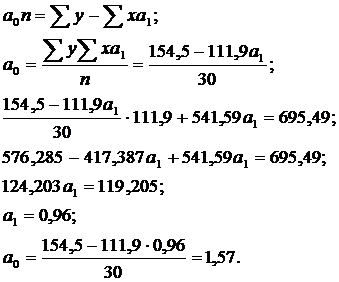 Пользуясь расчетными значениями (табл. 2.2), исчислим параметры для данного уравнения регрессии: