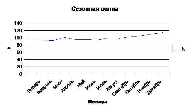 2. Для представления сезонной волны индексы сезонности изображают в виде графика (рис. 4.1).