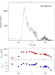 В основной фазе события полный поток электромагнитной энергии составил 1,1´10-3 эрг/см2 в диапазоне энергий 26 кэВ–18 МэВ. По величине потока этот гамма-всплеск является самым интенсивным за 20 лет непрерывных наблюдений в эксперименте КОНУС-ВИНД. Рекордная энергетика события обусловлена жесткостью излучения: характерная (пиковая) энергия достигала 2,8 МэВ и сохранялась на уровне выше 2,0 МэВ на протяжении основной фазы события (электронный международный циркуляр GCN#15870). Всплеск еще раз подтвердил преимущества удаленной от Земли орбиты КА «Винд»: основная фаза события была недоступна для миссий «Свифт» и «Ферми» (НАСА) из-за экранирования Землей