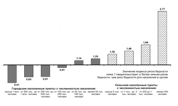 Рис. 1 Индекс бедности по населенным пунктам разно населенности[9]