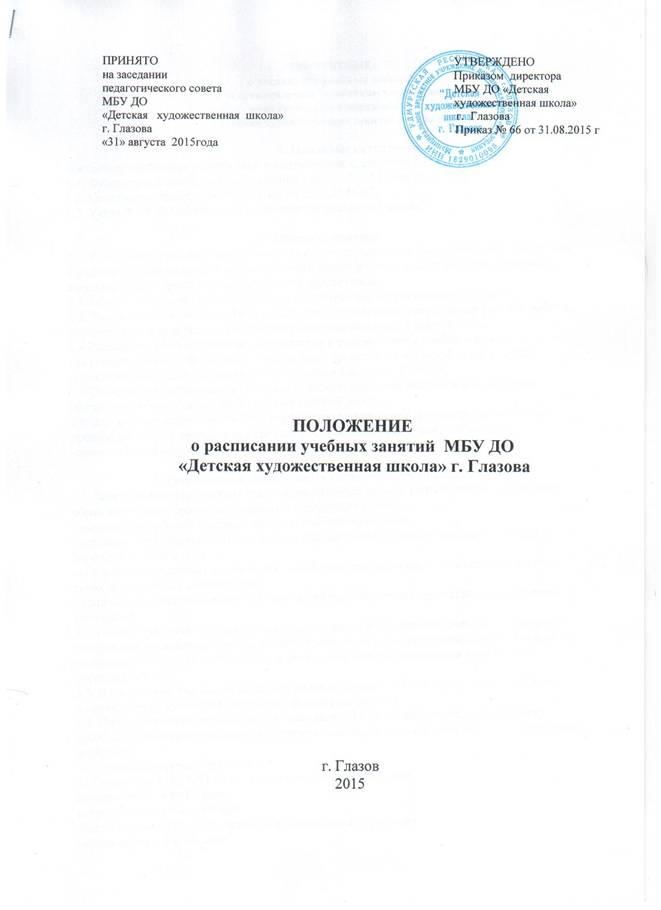 Положение о расписании учебных занятий МБУ ДО «Детская художественная школа» г. Глазова