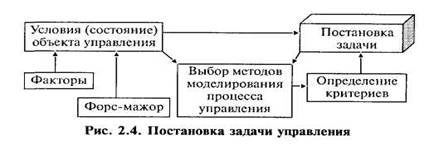 Определяющий этап — постановка задачи и принятие управленческого решения. Последнее предполагает определение критерия и выявление условий объекта управления, что наглядно показано на рисунке 2.4