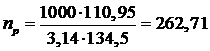 Расчетное значение частоты вращения шпинделя станка определяют по формуле, мин-1: