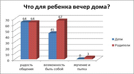 Для правильно организованной и эффективной работы с родителями необходимо постоянно изучать семью и условия семейного воспитания. Учителя СППС регулярно проводят различные исследования. Так в декабре 2012 года в гимназии проведено анкетирование, в котором участвовало 97 учащихся 1-11 классов и 95 их родителей. Анкетирование проводилось перекрестным методом, т. е. вопросы, предъявляемые детям и родителям, были очень похожими. Это дало возможность не только изучить семью с ее ценностными ориентациями, но и определить единство или противоречивость взглядов детей и родителей на те, или иные вопросы.