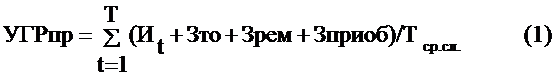 УГРпр технических средств/оборудования определяется суммированием расходов (индивидуального оттока денежных средств) возникающих при реализации инвестиционного проекта на каждом временном этапе (шаге расчета) сроке службы техники (расчетного периода).
