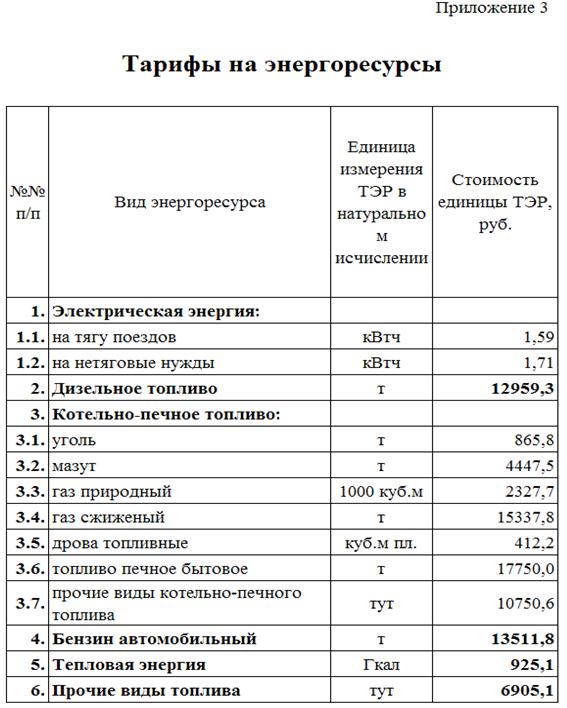 Тарифы (цены) на энергоресурсы, используемые для определения УГРпр, приведены в Приложении 3.