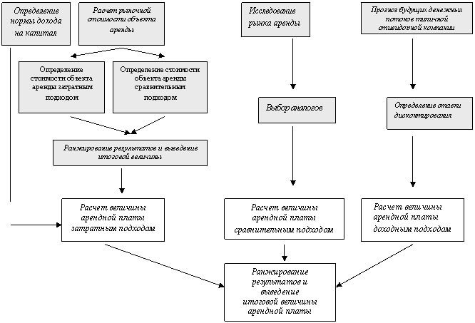 Определение арендной платы осуществляется с учетом всех факторов, существенно влияющих как на рынок недвижимости в целом, так и непосредственно на ценность рассматриваемой собственности. При определении арендной платы за объекты недвижимости обычно используют три основных подхода.