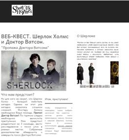 Для решения проблемы необходимо создать идею, вокруг которой будет осуществляться работа учащихся над веб-квестом. В качестве идеи была выбрана современная сюжетная линия «Шерлок Холмс» (Приложение 1). И в качестве задания поиск доктора Ватсона. Для создания данного веб-квеста была использована платформа (Приложение 2). Для использования в веб-квесте мобильных устройств, была выбрана идея с qr-кодами. Задания квеста предполагают поисковый, исследовательский и развивающий характер деятельности.