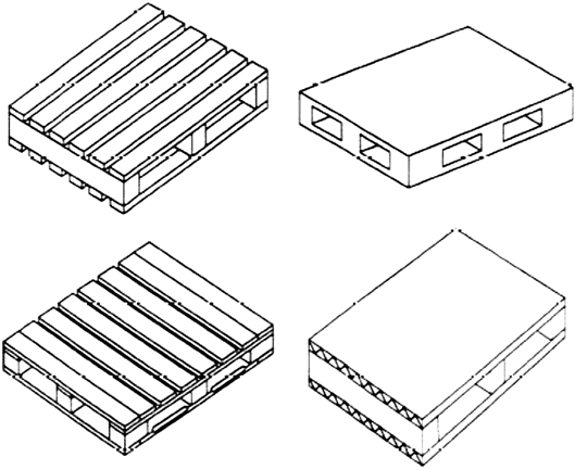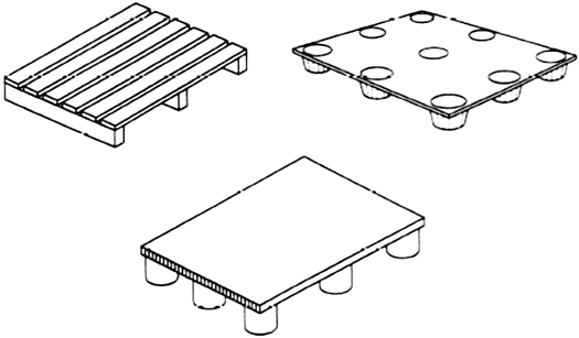 2.1. поддон (pallet): Горизонтальная площадка минимальной высоты, соответствующая способу погрузки с помощью вилочной тележки, или автопогрузчика, или другого аналогичного оборудования, используемого для укладывания на стеллажи, перегрузки и транспортирования грузов (рисунок 1).