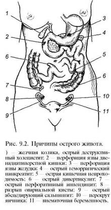1. Внутрибрюшинные воспалительные заболевания, требующие неотложной операции (рис. 9.2):