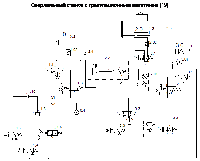 2. На примере принципиальной пневмосхемы по второму вопросу нужно осветить принципы построения, элементную базу, особенности расчета, проектирования и эксплуатации пневматических систем. (Шинкоренко систем пневмоавтоматики: Учебн. пособие. – Новосибирск: Изд-во НГТУ, 2002. и др. Пневмопривод и пневмоавтоматика. Учебн. пособие. – Новосибирск: Изд-во НГТУ, 2001.).