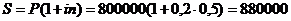 А) Выдать кредит в сумме 800’000 руб. под 20% годовых (начисляются простые проценты) на срок – 180 дней;
