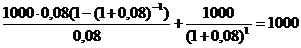 1) (раз без дисконта – паритетная облигация à купонная ставка равна рыночной процентной ставке à i=0,08)