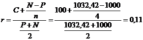 Отсюда высчитывается доходность к погашению r. Посчитаем ее по упрощенной формуле: