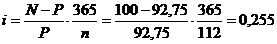 Номинал дисконтной облигации - 1 000 000 долларов. Одна облигация куплена за 92,75 , срок погашения через 112 дней, вторая за 94,86, срок погашения – 103 дня. Какую облигацию приобретет инвестор?