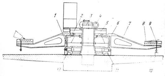 3) линия обработки и штабелирования вайербарсов (магистральный и вспомогательный рольганги, гидротолкатели, пила для разрезки заготовок на вайербарсы, гидрокантователь для осмотра слитков, клеймитель и штабелировщик).