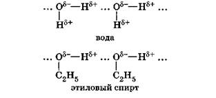 При наличии такой связи даже низкомолекулярные вещества могут быть при обычных условиях жидкостями (спирт, вода) или легко сжижающимися газами (аммиак, фтороводород).