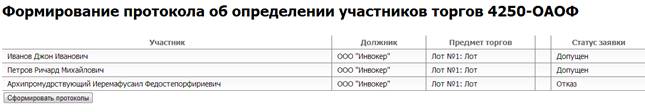 6.4 Формирование протокола об определении участников открытых торгов