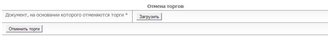 Чтобы отказаться от проведения торгов необходимо перейти по ссылке «Отменить торги» в желтом меню доступных операций и прикрепить документ, объясняющий причину отмены торгов. После этого торги будут завершены (рис. 5.17).
