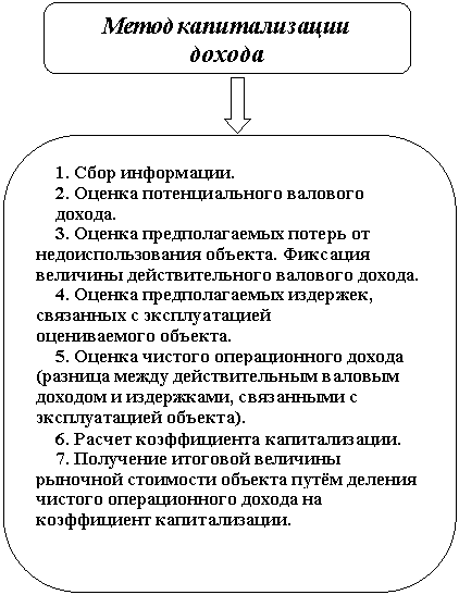 Основные этапы расчета стоимости объекта недвижимости при помощи общего коэффициента капитализации: