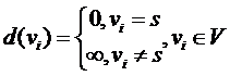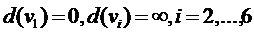 1. Всем вершинам присваиваются начальные метки и выбирается текущая вершина ![]()