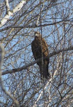 На Дарвинской тропе поселились коршуны. В прошлом году в этом гнезде на березе сидела ворона, и мы переживали, как ей приходится под майским снежком. В этом году эмоции захлестывают. Много удивительных звуков и зрелищ. Во-первых, поражают крики, крики спаривания на земле, крики высоко в небе, крики ворон, что упорно преследуют семейную пару, догоняя их, как истребители бомбардировщиков. Каждый день - новая маленькая пьеса! Удивляет привычка коршуна украшать гнездо старыми тряпками и бумагой. Об этой привычке сто лет назад писал Брем, и старое воронье гнездо наши коршуны, этакие экологи-санитары, превратили в цыганский табор, украсив его пластиковыми пакетами. Удивляет красота коршуна, особенно увеличенная объективом, его блестящие карие глаза, чёрный клюв, желтая восковица и желтые лапы. Удивляет, что такая крупная птица не боится человека. Под гнездом на пеньке часто сидят влюбленные парочки с хрипящими телефонами, по дороге проносятся байкеры, а недавно приехала бригада с бензопилами и полдня уничтожала ивняк под высоковольтной линией. Самка упорно сидит на яйцах. Коршуны умные птицы, легко, говорил Брем, отличают охотника от простого крестьянина. Прохожие их не волнуют, но стоит мне бесцеремонно навести объектив фотоаппарата и, спрятаться за деревом, начать подкрадываться ближе, птицы величаво снимаются с ветки и, взмахнув длинными крыльями, исчезают в небе. Впрочем, в Африке коршуны тоже смелые птицы – даже утаскивают рыбу, что женщины несут в корзинах на голове. Коршун часто гнездится в заброшенных вороньих гнездах, самка в таком гнезде с трудом помещается, но, не смотря на малые размеры, в гнезде его порой живут воробьи. Такое гнездо я наблюдал в нашем заповеднике Титов Лог. Удивительно, но в гнездо пришлось лезть мне самому. Мальчишки разучились подниматься на высокие деревья, а вот девочки с удовольствием поднялись и позировали на фоне мохнатых птенцов. Два птенца лежали с безучастным видом, а третий пытался встать на ноги и отчаянно кричал и даже пытался меня клюнуть. Родители, однако, его не защитили, парили высоко в небе. А вот воробьи смело вились у моей головы, когда я проник дерзкой рукой в их теплые гнезда. А вот хозяева своих непрошенных квартирантов никогда не обижают. Коршуны совсем не те герои русских сказок, напрасно в народе звали их цыплятниками. Где найти им цыпленка, сейчас они инкубаторские. Жаль, что ушли в небытие игры нашего детства, что так красочно описывал Даль. Может вы тоже играли в них? Идет курица-наседка, за ней гуськом цыплята, а злой коршун пытается схватить цыпленка. Курица бьет его с криком. И все смеются. Сегодня коршун скорее эколог, чистильщик побережий водоемов от падали. Добыча его – насекомые и мыши да лягушки. Может, настанут времена, когда люди и птицы будут жить мирно. В религиозных брошюрках именно так представляют рай. Значит и наша тропа – райский уголок. Брем считал коршуна полезной птицей, потому что он украшает своим силуэтом наши довольно пустые птицами небеса. А нам хочется больше общаться с этой красивой птицей и провести лето под знаком коршуна.