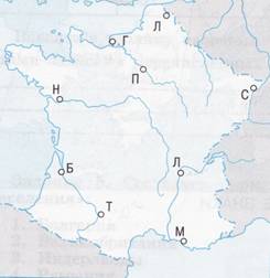 27. На рисунке 1 надпишите главные города Франции по заглавным буквам их названий. Выделите среди них три самых больших города-миллионера.