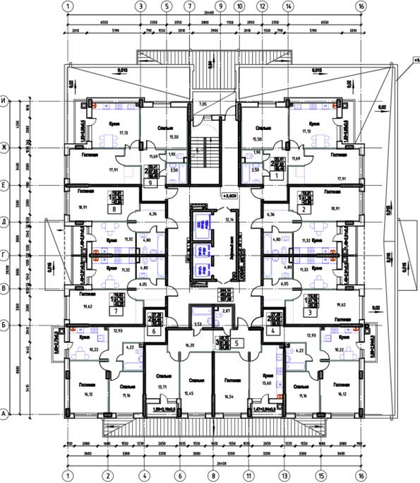 Материал поэтажных перекрытий | Перекрытия плоские безбалочные монолитные железобетонные толщиной 180 и 200мм. | |