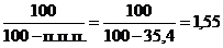 1,55· 100·(100-1)=1,566 т/т клинкера,