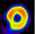 При ОФЭКТ с ЭКГ-синхронизацией проводится визуальная оценка сокращений ЛЖ сердца в систолу и диастолу, что позволяет оценить участки нормокинезии, гипокинезии и акинезии. Толщина стенки миокарда ЛЖ определяется как расстояние между внутренней и наружной границами полученного изображения. Систолическое утолщение определяется как разница толщины стенки ЛЖ в систолу и диастолу. Результаты количественного определения систолического утолщения выражаются в процентах. Выраженность региональных нарушений систолического утолщения миокарда ЛЖ оценивают полуколичественным методом по 4-балльной шкале: 0 баллов – нормальное систолическое утолщение (не менее 70%); 1 балл – умеренное снижение систолического утолщения (70-40%); 2 балла – значительное снижение систолического утолщения (40-10%); 3 балла – выраженное снижение систолического утолщения (менее 10%).