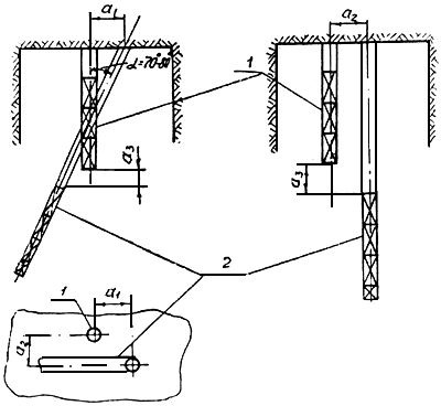 1 - запрессовочный шпур; 2 - отбойный шпур
