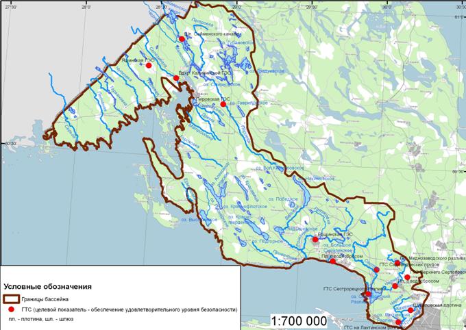 В качестве целевого показателя принята обеспеченность к 2015 году удовлетворительного уровня безопасности всех ГТС на водных объектах рассматриваемого бассейна в Санкт-Петербурге и Ленинградской области.