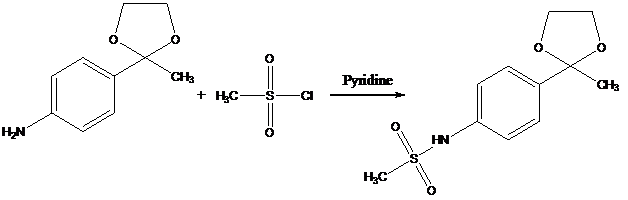 Взаимодействие аминодиоксолана (3) с метилсульфохлоридом при пониженной температуре в пиридине приводит к 2-метил-2-(4’-метилсульфамидофенил)-1,3-диоксолану (4) с выходом 70%.