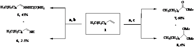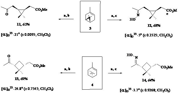 a) O3, MeOH - H2O, 0oC; b) NH2C(O)NHNH2×HCl; c) NH2OH×HCl.