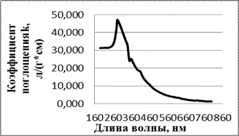 Рисунок 1 - Пример электронного спектра поглощения асфальтенов, выделенных из гудрона Западно-сибирской нефти