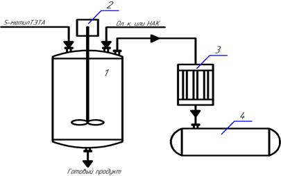 1-реактор; 2-перемешивающее устройство; 3-холодильник; 4-емкость.