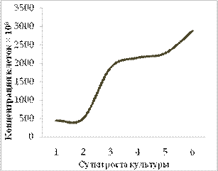 При культивировании Candida lipolytica в равных условиях на растительных жирах (рис. 1, а) и углеводородах нефти бензиновой фракции (рис. 1, б) наблюдали различия в сроках начала прироста клеток и его интенсивности. При этом, углеводороды разлагались значительно быстрее (примерно за 4 суток). В обоих случаях клетки дрожжей являлись одинаково жизнеспособными в течение периода наблюдений.