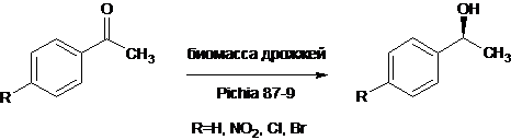 Таким образом, найдены условия энантиоселективного биовосстановления ацетофенона и его функциональных производных с помощью биомассы дрожжей Pichia 87-9.