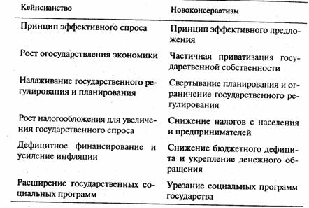 О том, насколько было велико расхождение между кейнсианцами и новоконсерваторами, дает представление табл. 1