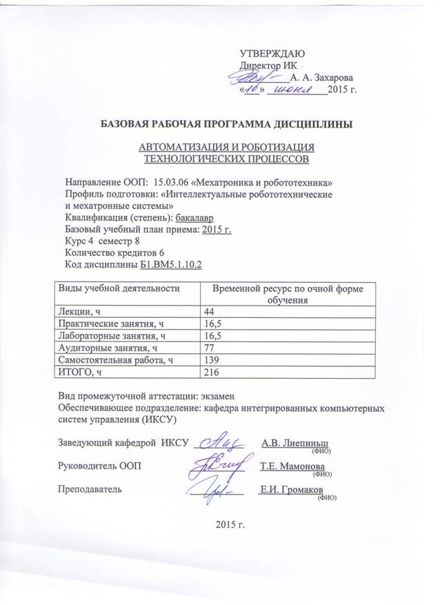 Обеспечивающее подразделение: кафедра интегрированных компьютерных систем управления (ИКСУ)
