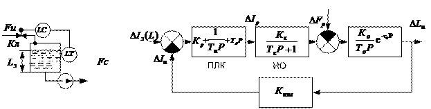 Резервуар, в котором необходимо регулировать уровень жидкости, показан на рис.1а. Исполнительное устройство уменьшает приток жидкости в резервуар при увеличении уровня в нем и увеличивает его при уменьшении уровня. В результате проведенных экспериментов определено то, что передаточная функция объекта управления представляет собой апериодическое звено с запаздыванием, вызванным тем, что исполнительное устройство находится на расстоянии от резервуара.