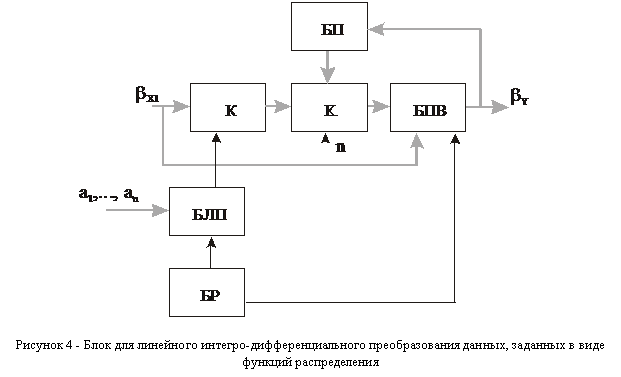 Блок для линейного интегро-дифференциального преобразования статистических данных, заданных в виде функций распределения, имеет структуру, представленную на рис.4