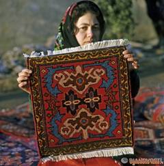 Воспитатель: Вот какие золотые руки у наших дагестанских ковровщиц. Перейдем к следующему стеллажу. Ребята кто изображен на фотографии?
