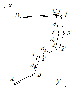 Способ проектного полигона (рис. 12.1) применяют при разбивке вытянутых сооружений – железнодорожных путей, автомобильных дорог, ЛЭП и пр. Он заключается в последовательном выносе в натуру углов поворота трассы и длин сторон.